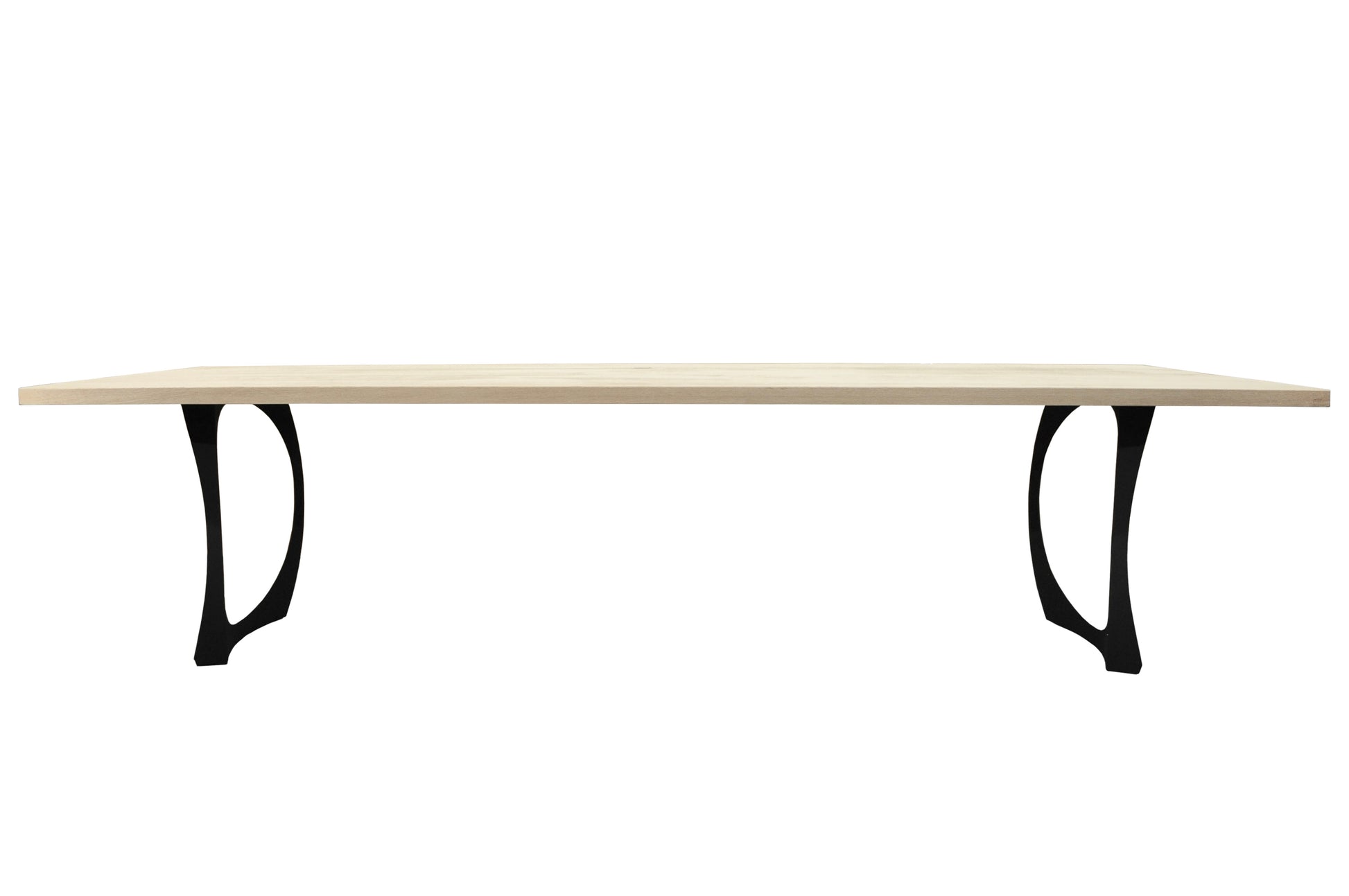Introducing the Satus White Oak Conference Set– a harmonious blend of exquisite craftsmanship and timeless design. Crafted from premium solid white oak wood, this remarkable table exudes sophistication and durability, making it an ideal centerpiece for your conference room or dining space. Every detail of the Satus Set reflects a commitment to quality and artistry. The tabletop showcases the rich and distinct grain patterns of white oak, creating a surface that is both visually captivating and resilient to daily use. Each piece of wood is carefully selected and expertly joined, ensuring a seamless and polished finish that adds a touch of refinement to any setting. Complementing the natural beauty of the oak wood, the table is elevated by meticulously hand-crafted powder-coated steel tunnel table legs. These one-of-a-kind legs are a true testament to skilled craftsmanship, formed with precision and care to provide stability and longevity. The steel legs are uniquely designed to seamlessly integrate with the oak top, creating an elegant fusion of materials that celebrates the contrast between rustic charm and modern sophistication. Whether you're hosting high-level business meetings or gathering with friends and family, the Satus Set offers ample space for collaboration, conversation, and culinary delights. Its generous dimensions provide comfortable seating for a group, ensuring everyone can engage in discussions without feeling cramped. The Satus Set is more than just furniture; it's a statement piece that speaks to your discerning taste and appreciation for the finer things in life. Elevate your space with the timeless allure of solid white oak wood and the artistic mastery of hand-crafted modern aesthetic legs. The contemporary office chairs are the perfect juxtaposition, with sleek chrome frames, white high back ribbed leather upholstery. Each of the 10 chairs features a 360-degree swivel base, smooth glide wheels and pneumatic adjustable height for individual accommodation and maximum comfort. a lasting impression with this exceptional table that embodies the perfect union of form and function. Invest in a centerpiece that transcends trends and captures the essence of enduring beauty – the Satus Conference Set. Add it to your space today and experience the luxury of craftsmanship that stands the test of time.--